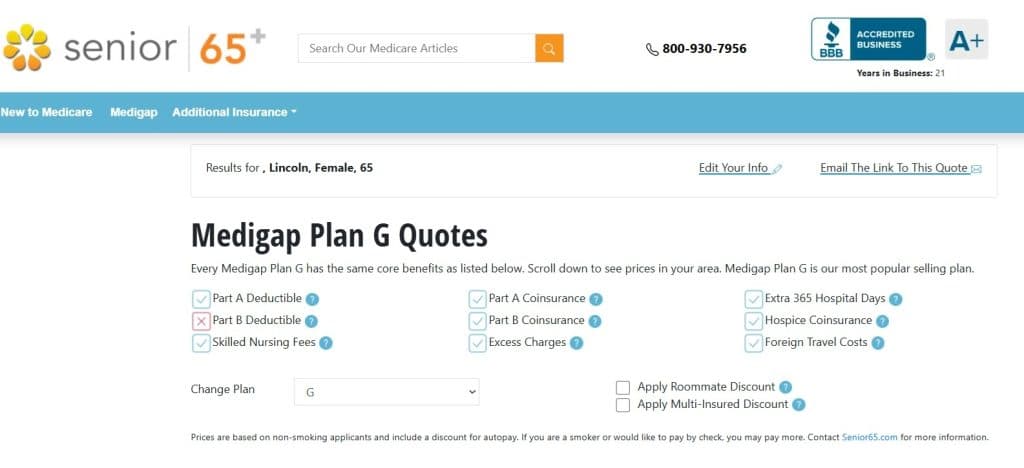 - In this example, we’re looking at a woman from Lincoln, Arkansas, born on 10/08/1960. By default, the tool shows Plan G, but you can use the dropdown arrow to switch to any available plan.