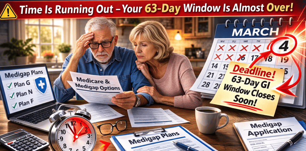 If your Medicare Advantage plan ended on December 31, 2025, that 63-day countdown started on January 1, 2026. That means your Guaranteed Issue window ends on March 4, 2026. After that date, insurers can look at your health history, charge more, or even deny coverage. In other words, you only have a few days left to lock in your Guaranteed Issue rights.